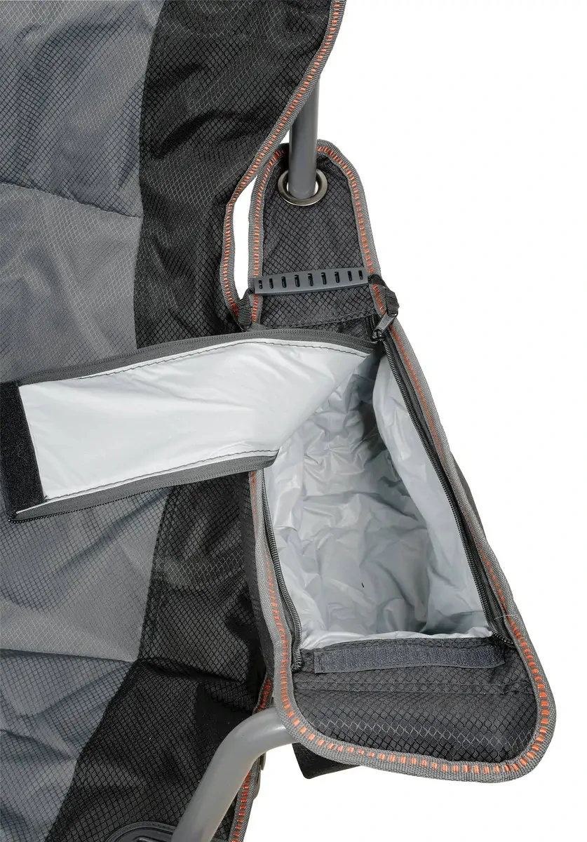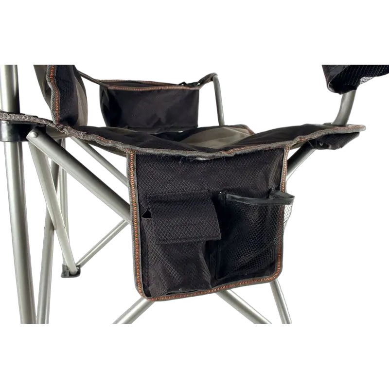 But wait, there's more! This chair goes above and beyond to ensure your comfort and convenience. The fully padded high back guarantees exceptional comfort, while the larger zippered cooler on one arm is a game-changer, allowing you to keep a bottle or numerous cans within arm's reach for uninterrupted relaxation. No more constant trips for hydration and snacks!