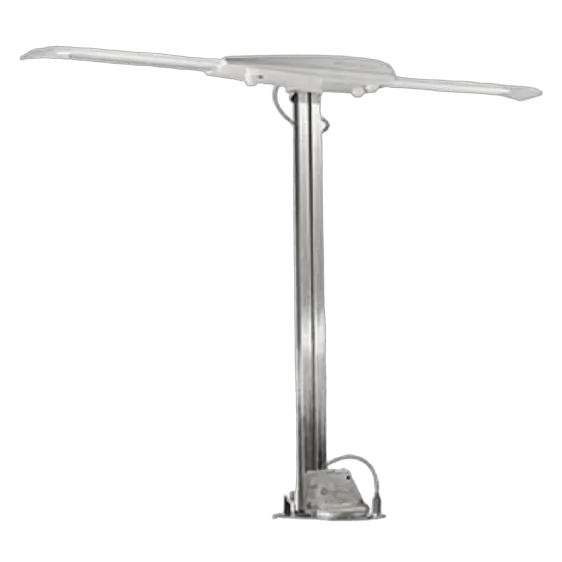 - Mounted on rugged aluminium lift which raises, lowers (to within 100mm of roof) and rotates from the inside of the RV.