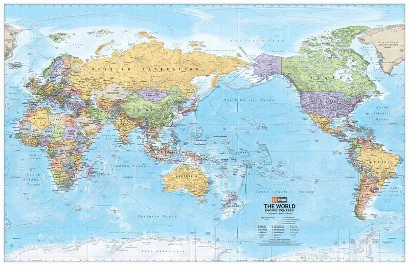 World Political Pacific Centred Map - 1000x650 - Laminated - perfect as an educational tool, a reference point or for display purposes.