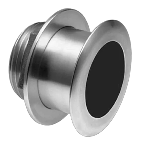 This 1 kW, flush-mount transducer is perfect for fast, trailered, tournament and sport-fishing vessels that cannot accommodate a high-performance fairing. The flush-mounted, stainless steel housing protrudes less than 6.35 mm (1/4") outside your hull, so it can sit on trailer rollers and bunks. The ceramic arrays are tilted inside the housing, providing the perfect vertical beam with maximum energy on what is directly below the boat.