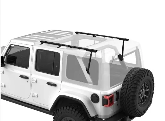Custom rooftop track system with internal supports for jeep wrangler hardtops jl 4-door, 2018+ The internal support structure ratchets up the off-road carrying capacity to safely and confidently carry roof top tents, recovery gear and just about anything else you can throw up there. RibCage is compatible with traditional Yakima towers and crossbars or LockNLoad platform rack systems.