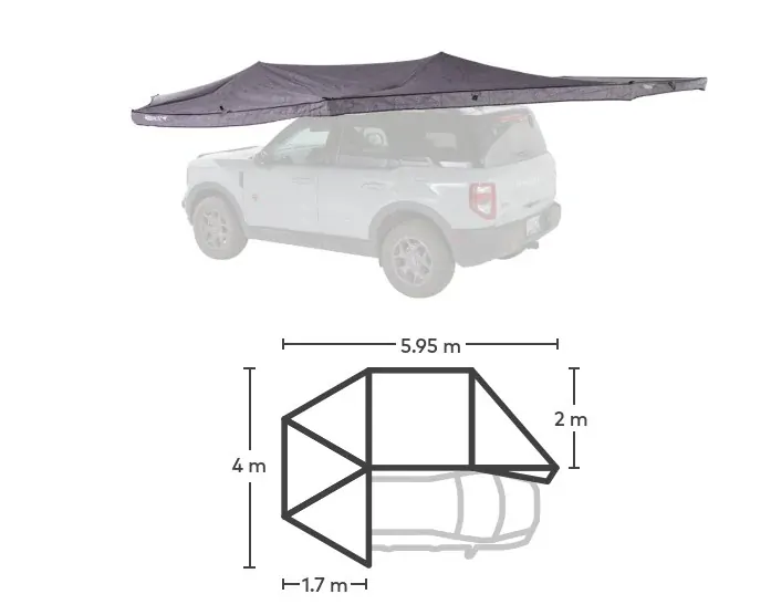 - Freestanding awning with heavy duty support arms make deployment easy